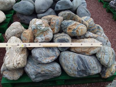 Но наилучшим применением будет использование камня-бонуса в ландшафте. Окатанная форма и размеры, присущие булыжникам, делают его идеальным элементом для садовых композиций. Бонус можно оформить как основу, в виде скульптур каменного сада или акцентов в облике рокариев и альпинариев. А можно сочетать такой булыжник с другими минералами, как дополнение отсыпки водоёмов, каменной окантовки клумб, дорожек, и в других решениях ландшафтного декора.