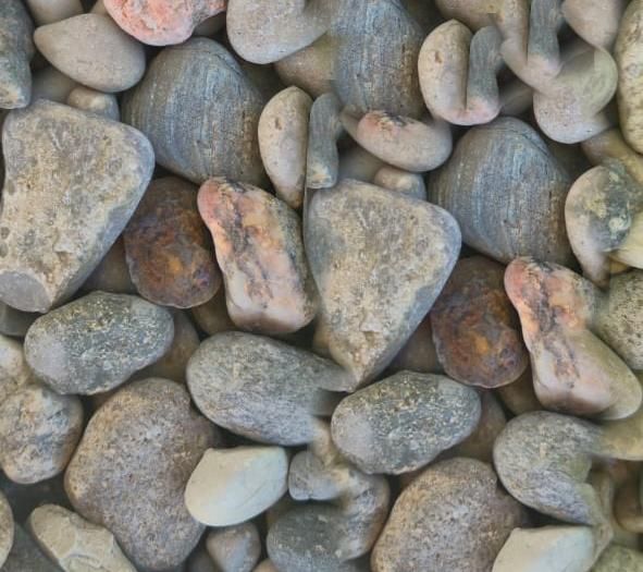 Окатанные под воздействием течения воды. Они имеют гладкие, достаточно округлые края и сортируются по цвету и размеру, что обеспечивает выбор материала для разных работ. Благодаря экологичности и прочности, гальку используют в строительстве, в декоративных целях и для создания ландшафтных композиций.