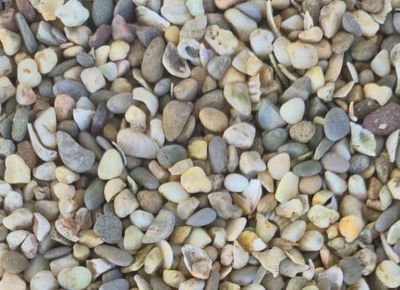 Мы предлагаем морскую гальку основных цветовых оттенков – серо-синюю и рыжую, пёструю с фракциями: