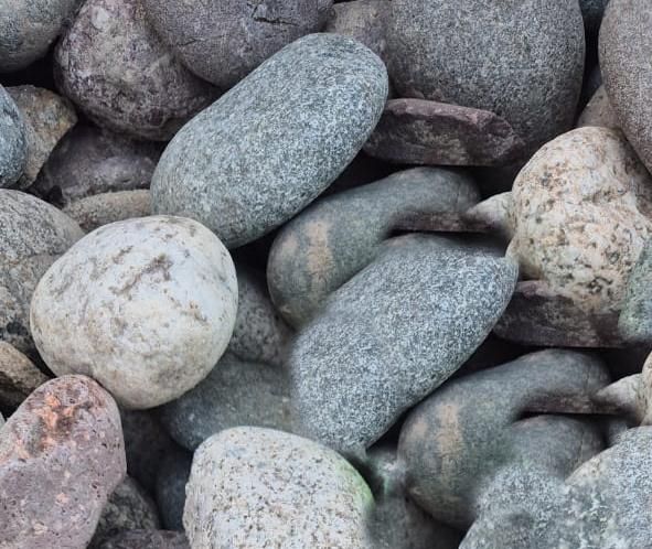 Окатанные под воздействием течения воды. Они имеют гладкие, достаточно округлые края и сортируются по цвету и размеру, что обеспечивает выбор материала для разных работ. Благодаря экологичности и прочности, гальку используют в строительстве, в декоративных целях и для создания ландшафтных композиций.