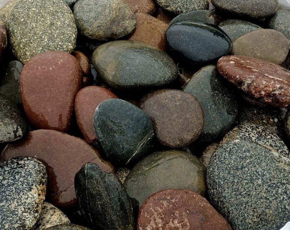 Цветная галька имеет природные оттенки (красные, коричневые, серые, желтоватые, пёстрые сочетания), которые сохраняют насыщенность на протяжении всего срока эксплуатации и эффектно подчеркивают элементы дизайна.