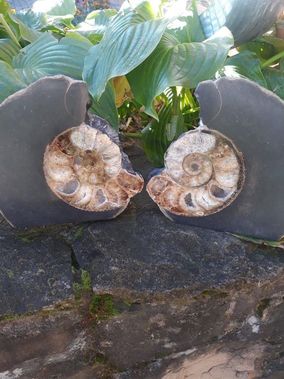 Амонит, пиленый на половинки, — это уникальная окаменелость древнего моллюска, аккуратно распиленная и отполированная, чтобы раскрыть его внутреннюю структуру и природный рисунок. В разрезе амонит демонстрирует выразительную спираль, камеры и натуральные оттенки минералов, что делает его особенно ценным для коллекционеров, дизайнеров интерьеров и любителей природного декора.