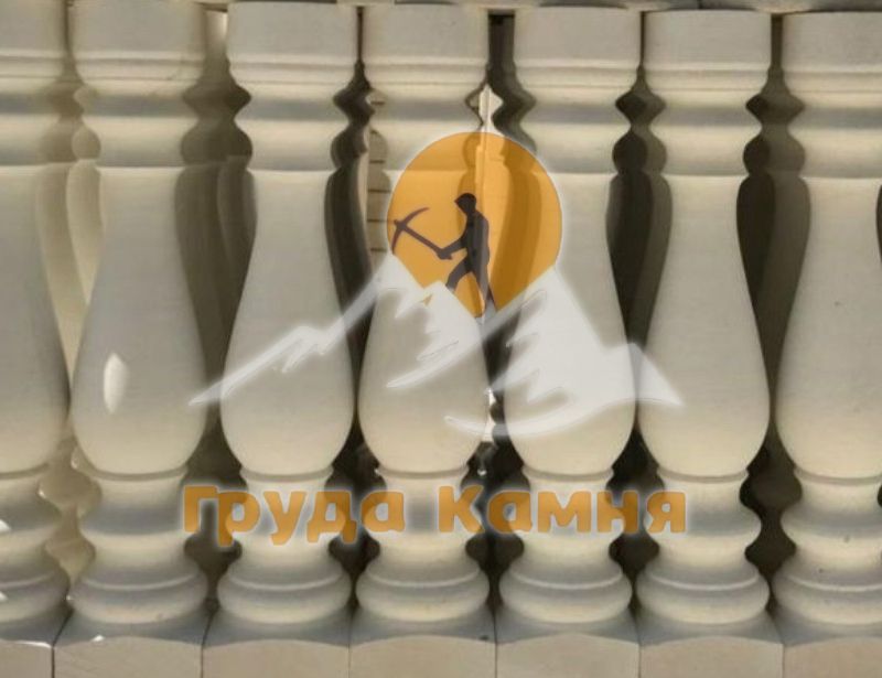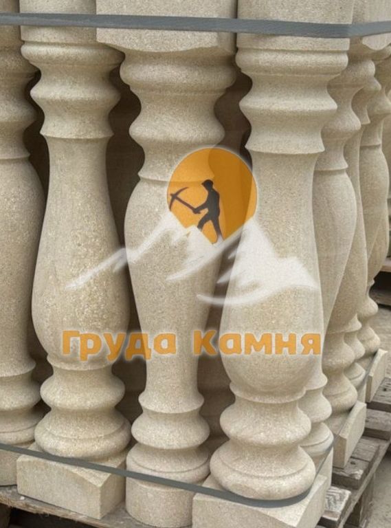 Балясины из светло-желтого песчаника хорошо комбинируются с каменными перилами, ступенями, колоннами и фасадной отделкой. Возможны различные виды обработки поверхности — шлифовка, полировка или декоративное состаривание, а также изготовление по индивидуальным размерам.
