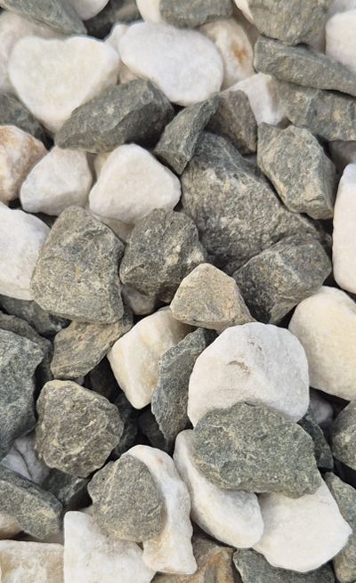 Бело-зелёная крошка — элегантный и живописный материал, который идеально подходит для создания природного и свежего декора. Сочетание светлых белых и насыщенных зелёных оттенков создаёт атмосферу гармонии и спокойствия, что делает её отличным выбором для оформления садов, цветников и ландшафтных проектов. Также идеально подходит для аквариумов, водоёмов или как декоративный наполнитель для ваз и контейнеров.