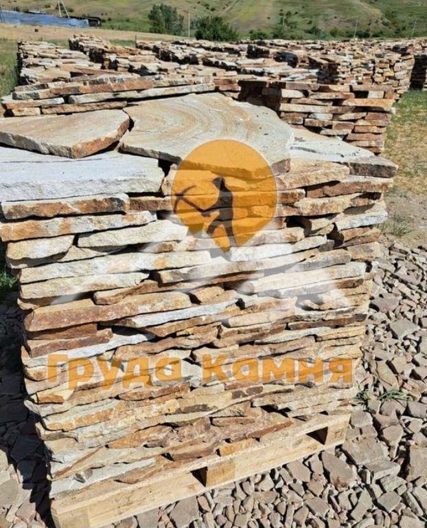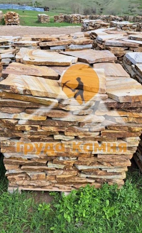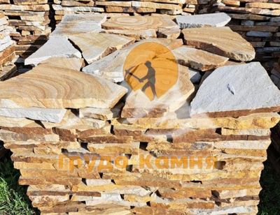 Песчаник широко используется для мощения дорожек и площадок, облицовки фасадов и цоколей, оформления террас, подпорных стен, клумб, альпийских горок и декоративных элементов в ландшафтном дизайне. Светлый оттенок визуально расширяет пространство и гармонично сочетается с зеленью, деревом и архитектурными элементами.