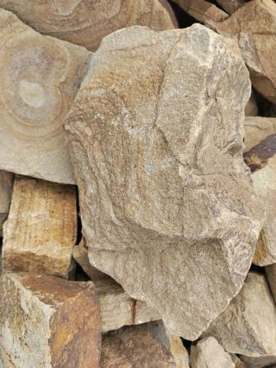 Бут из бело-жёлтого песчаника широко применяется для ландшафтных и строительных работ: возведения подпорных стен, оформления цоколей, заборов, альпийских горок, рокариев, укрепления склонов и создания декоративных каменных композиций. Фракция 100–400 мм делает материал универсальным как для конструктивных, так и для декоративных задач.