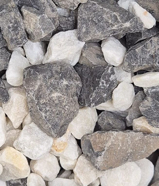 Чёрно-белая крошка — стильный и универсальный материал, идеально подходящий для декоративного оформления интерьеров и экстерьеров. Камни с контрастными чёрными и белыми оттенками создают уникальный визуальный эффект, привнося гармонию и элегантность в любую среду.