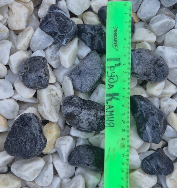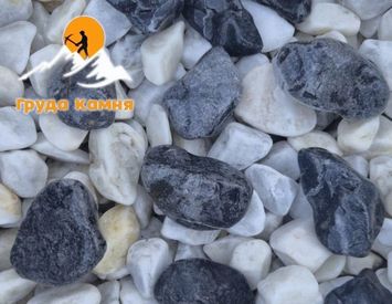 Чёрно-белая мраморная крошка галтовка — это декоративный материал, получаемый путём дробления и специальной обработки натурального мрамора (карбонатной породы). Галтовка (обработка в барабане с абразивом) придаёт частичкам гладкую, закруглённую форму без острых краёв, что делает её безопасной для использования в ландшафтном дизайне и строительстве. Цветовая гамма сочетает оттенки чёрного и белого (серо-белого), создавая контрастный, элегантный вид. Фракции обычно варьируются от 5-10 мм до 20-40 мм, что позволяет выбирать под конкретные нужды.
