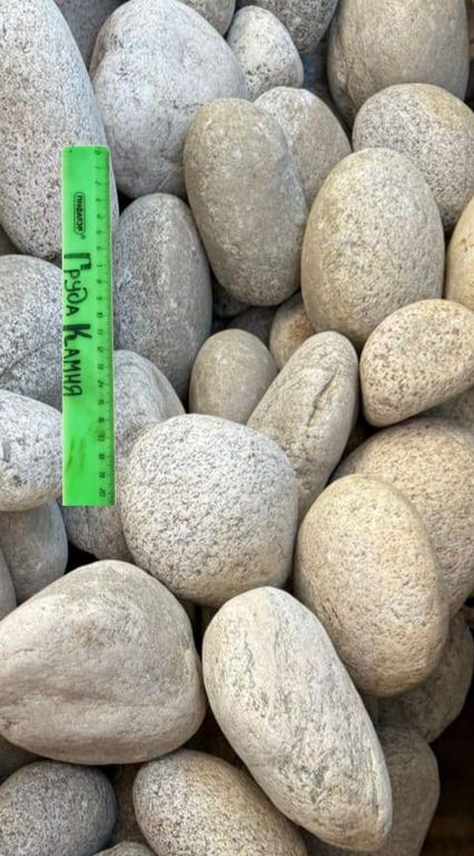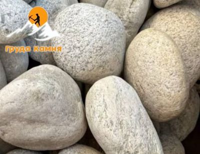 Натуральная галька средней фракции с плавными округлыми формами. Камни отличаются природной прочностью, естественной цветовой гаммой (от серых до тёплых оттенков) и гладкой поверхностью.
