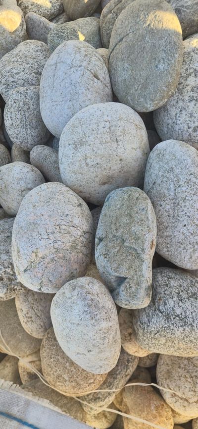 Крупная декоративная галька с естественным белом оттенком и округлой формой. Камни обладают гладкой поверхностью, благодаря чему гармонично смотрятся в любом ландшафтном дизайне.