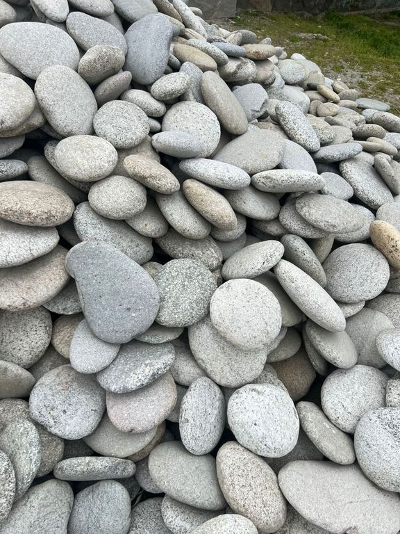 Камни крупной фракции имеют естественные оттенки (серые, бежевые, коричневые), гармонично вписываются в любой ландшафтный дизайн. Благодаря плоской форме галька удобна для укладки и создания устойчивых конструкций.
