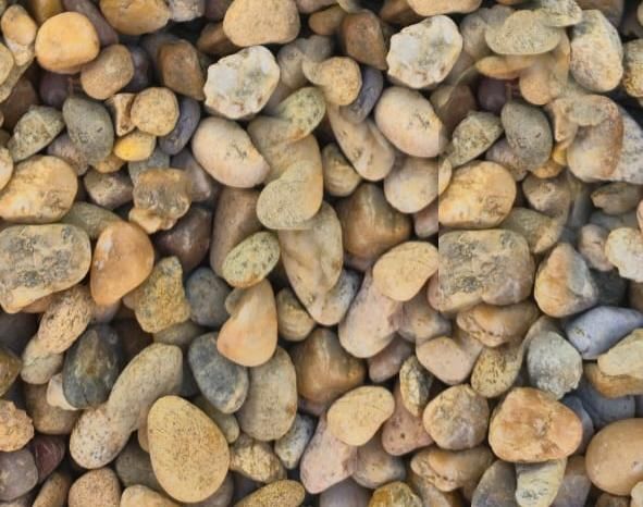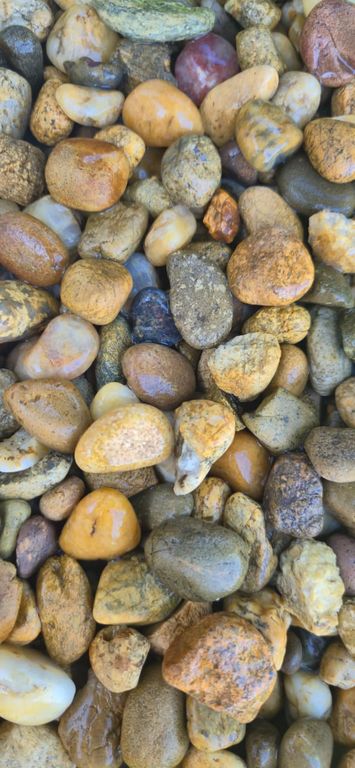 Окатанные под воздействием течения воды. Они имеют гладкие, достаточно округлые края и сортируются по цвету и размеру, что обеспечивает выбор материала для разных работ. Благодаря экологичности и прочности, гальку используют в строительстве, в декоративных целях и для создания ландшафтных композиций.