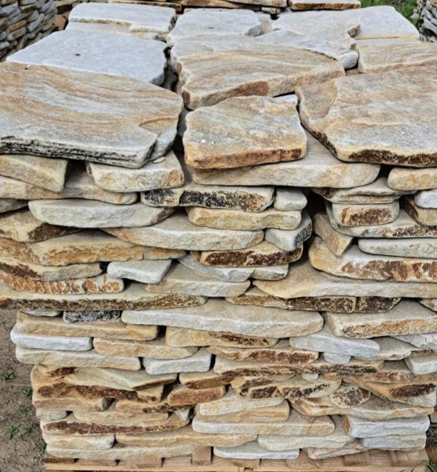 Бело-жёлтый галтованный плитняк с природным разводом — это натуральный камень с тёплой цветовой гаммой и уникальным рисунком. Светлая основа с мягкими жёлтыми прожилками придаёт поверхности живой, естественный вид и делает каждый элемент неповторимым. Галтованная обработка обеспечивает сглаженные края и безопасную, комфортную поверхность.