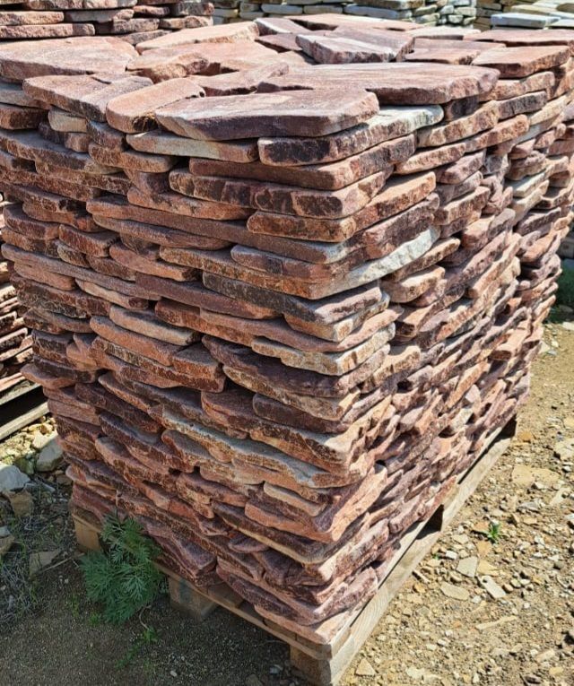 Камень плитняк малиновый галтованный — натуральный декоративный камень с насыщенным малиново-красным оттенком и выразительной природной текстурой. Галтованная обработка придаёт плитняку сглаженные края и приятную на ощупь поверхность, сохраняя естественный рисунок камня.