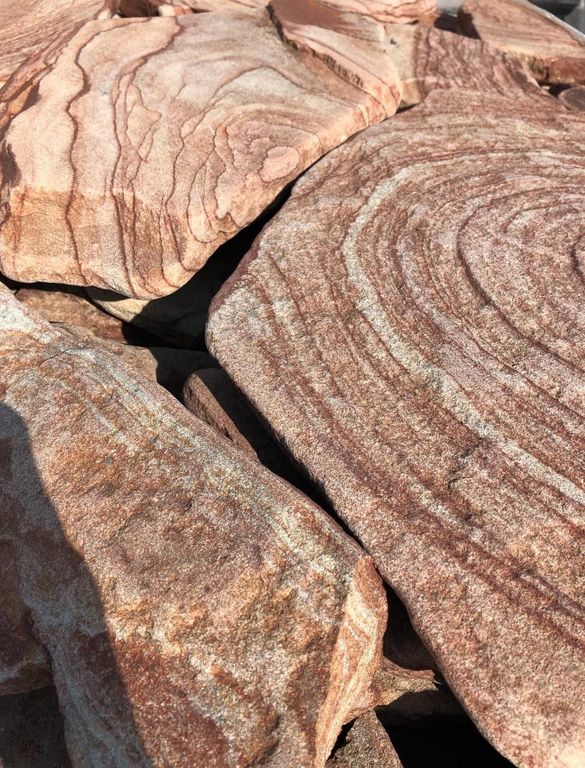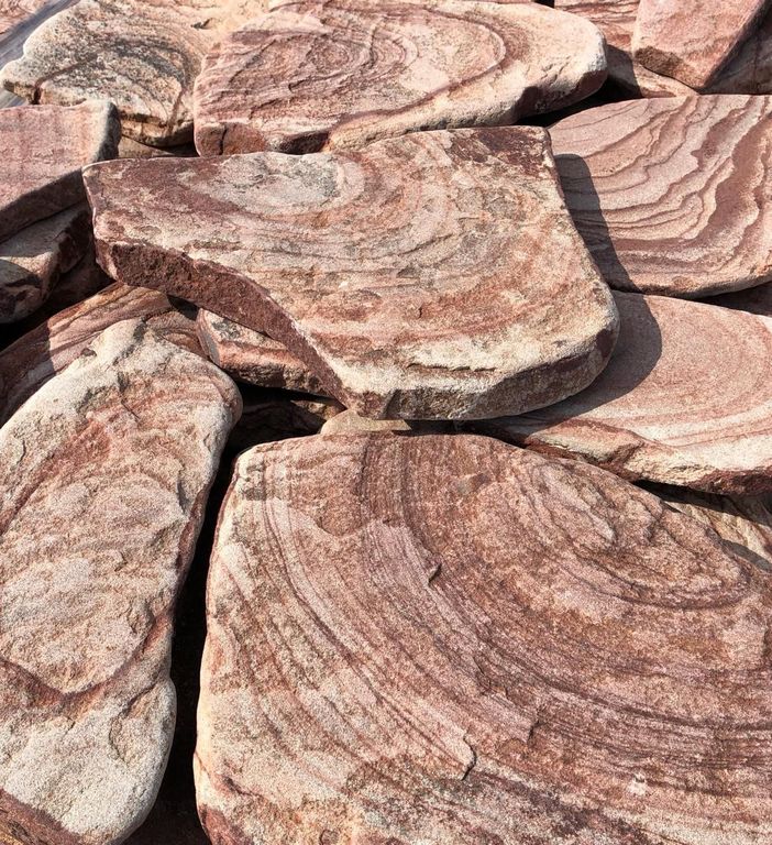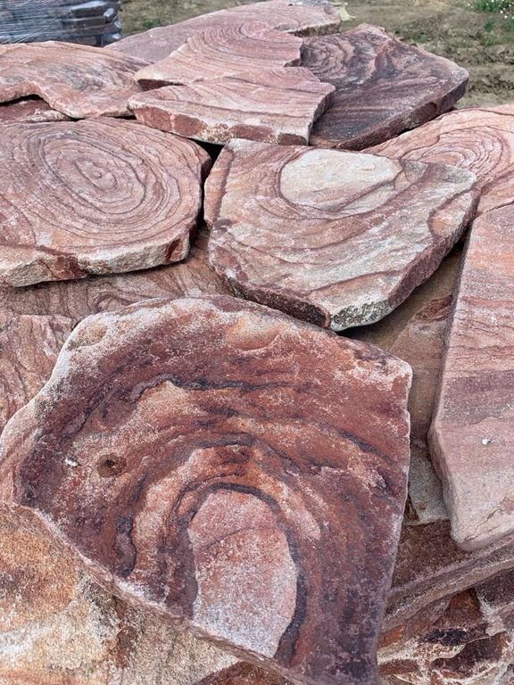 Малиновый плитняк отличается высокой прочностью, устойчивостью к влаге, перепадам температур и ультрафиолету. Камень не выгорает, не трескается и сохраняет насыщенный цвет при длительной эксплуатации. Экологически чистый и долговечный материал.