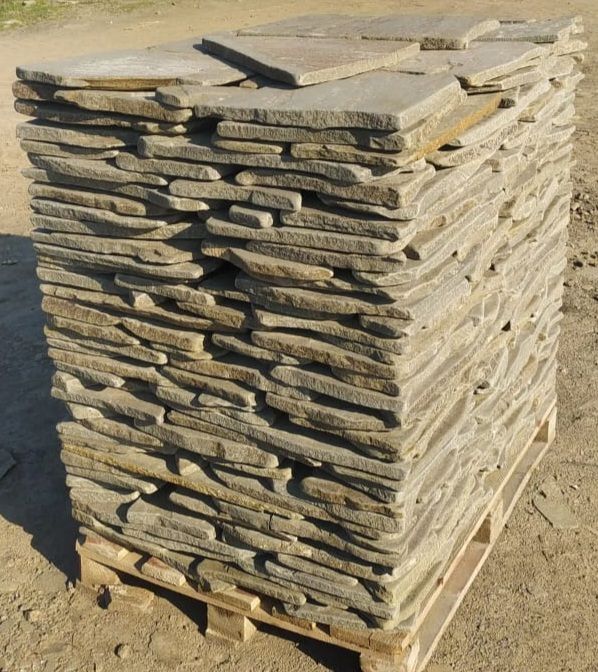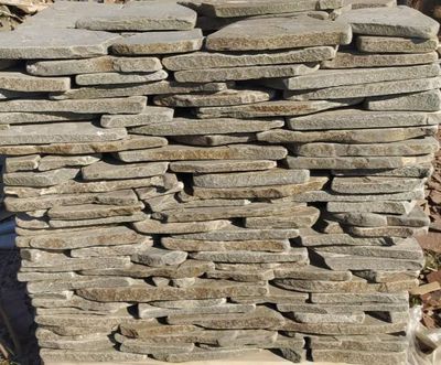Плитняк широко применяется для мощения садовых дорожек, террас, патио, дворов, облицовки цоколей, фасадов, подпорных стен, а также в ландшафтном дизайне. Серо-зелёный цвет отлично сочетается с зеленью, деревом и камнем других оттенков, создавая гармоничный и природный облик пространства.