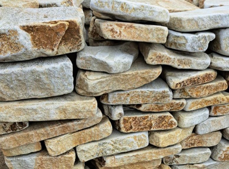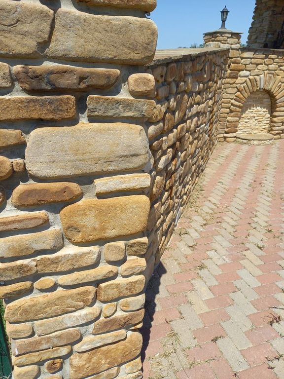 Благодаря массивности и высокой прочности камень идеально подходит для мощения дорожек и площадок, оформления террас, ступеней, подпорных стен, въездных зон и декоративных композиций. Бело-жёлтая окраска с разводами гармонично вписывается в любые ландшафтные и архитектурные проекты, создавая уют и стиль.