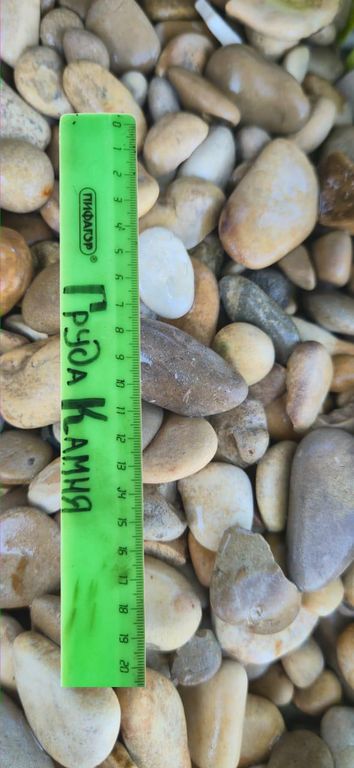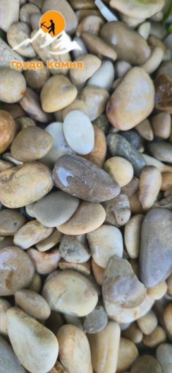 Мы предлагаем морскую гальку основных цветовых оттенков – серо-синюю и рыжую, пёструю с фракциями: