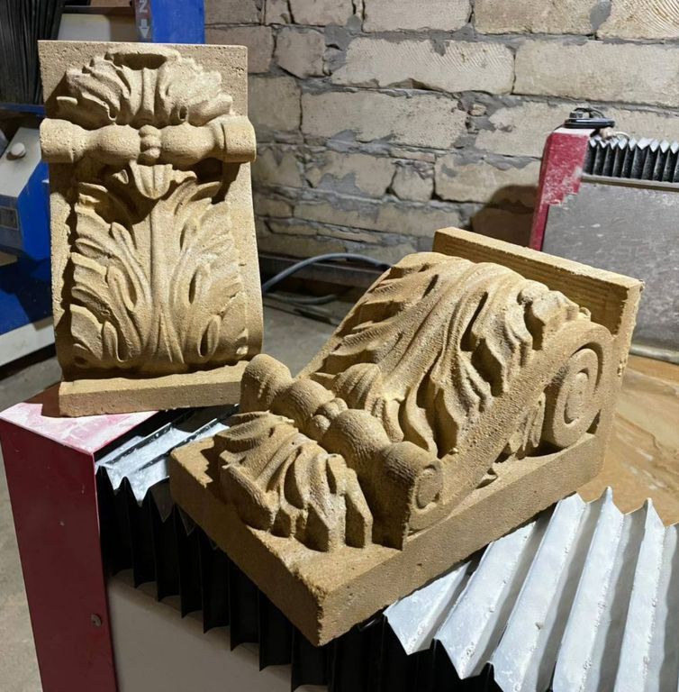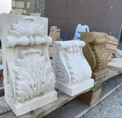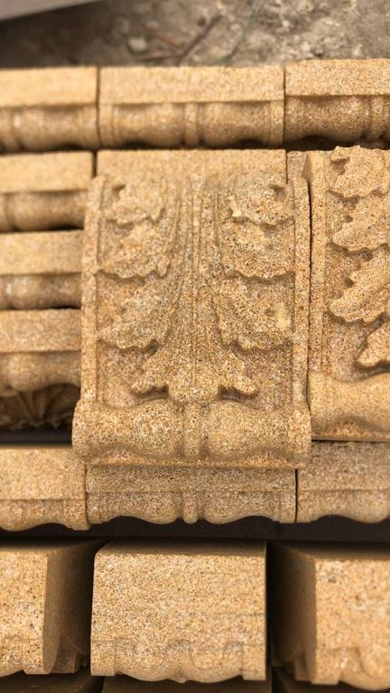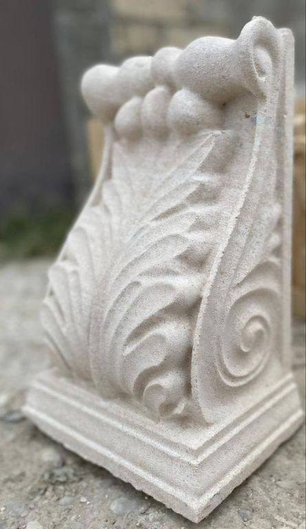 Кронштейн резной из камня — декоративный архитектурный элемент, предназначенный для оформления фасадов, балконов, карнизов и входных групп. Изящная резьба и натуральная текстура камня подчёркивают классический стиль здания и придают ему солидность.