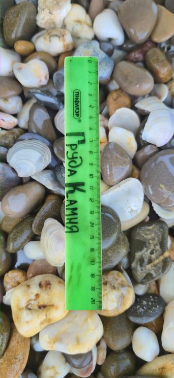 Крымская морская галька — это натуральный экологичный материал с гладкой поверхностью и естественной цветовой палитрой (от светло-серых до тёмно-графитовых оттенков). Обработанная морской водой и временем, галька отличается прочностью, долговечностью и эстетической привлекательностью.
