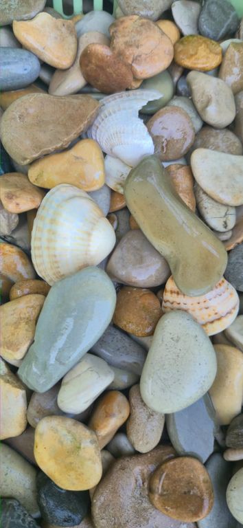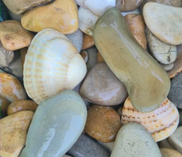 Мы предлагаем морскую гальку основных цветовых оттенков – серо-синюю и рыжую, пёструю.