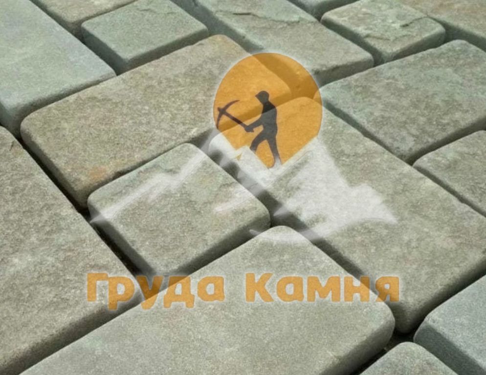 Купить Серо-зелёная галтованная брусчатка из камня — практичное и стильное решение для долговечного и эстетичного мощения.