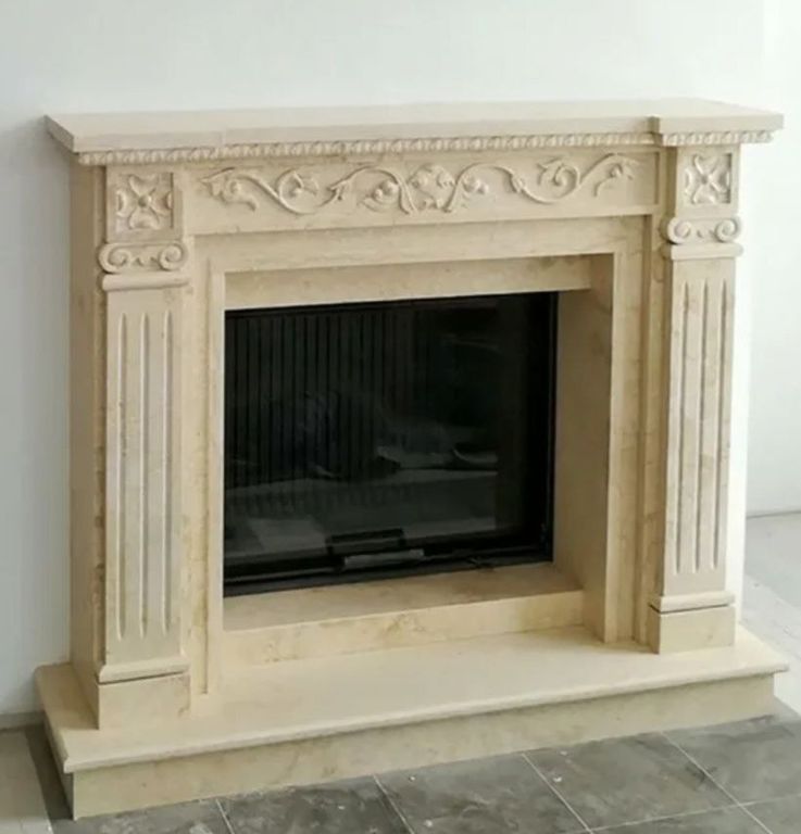 Портал для камина из Дербентского жёлтого ракушечника с узором — идеальный выбор для тех, кто ценит натуральный камень, декоративность и выразительный дизайн.
