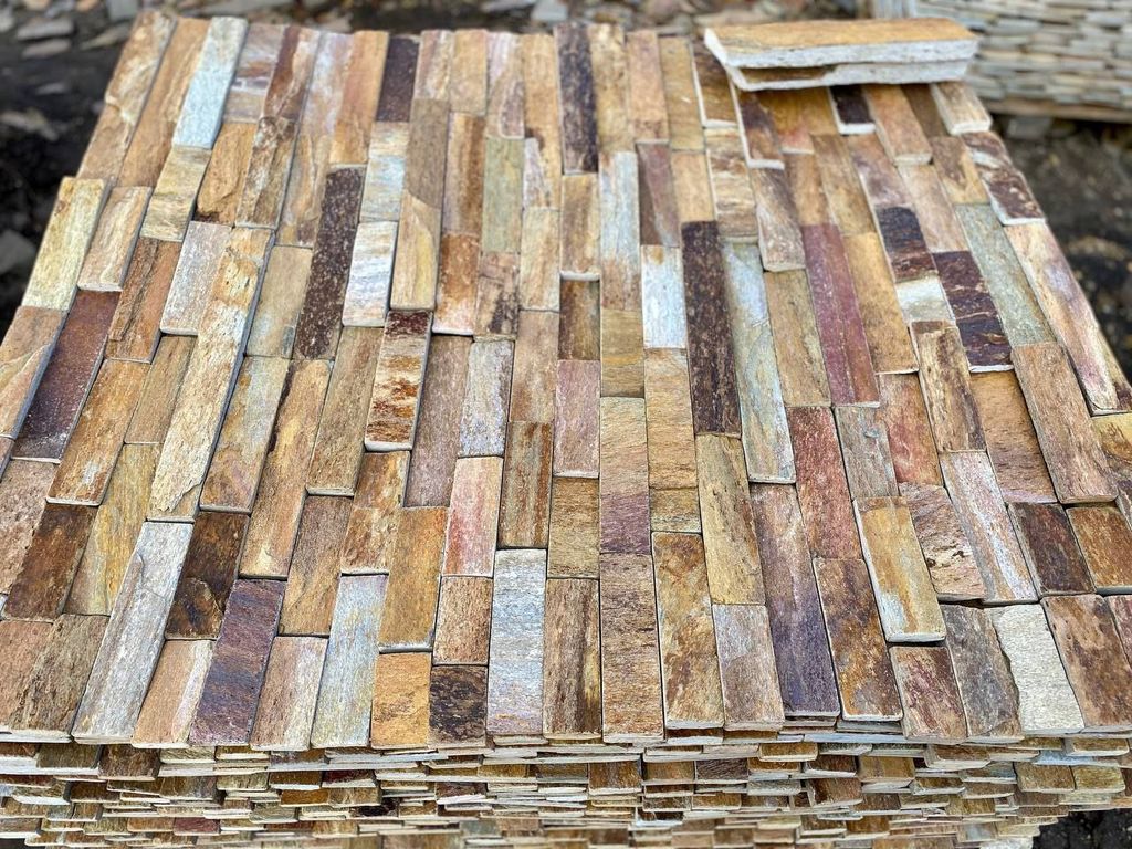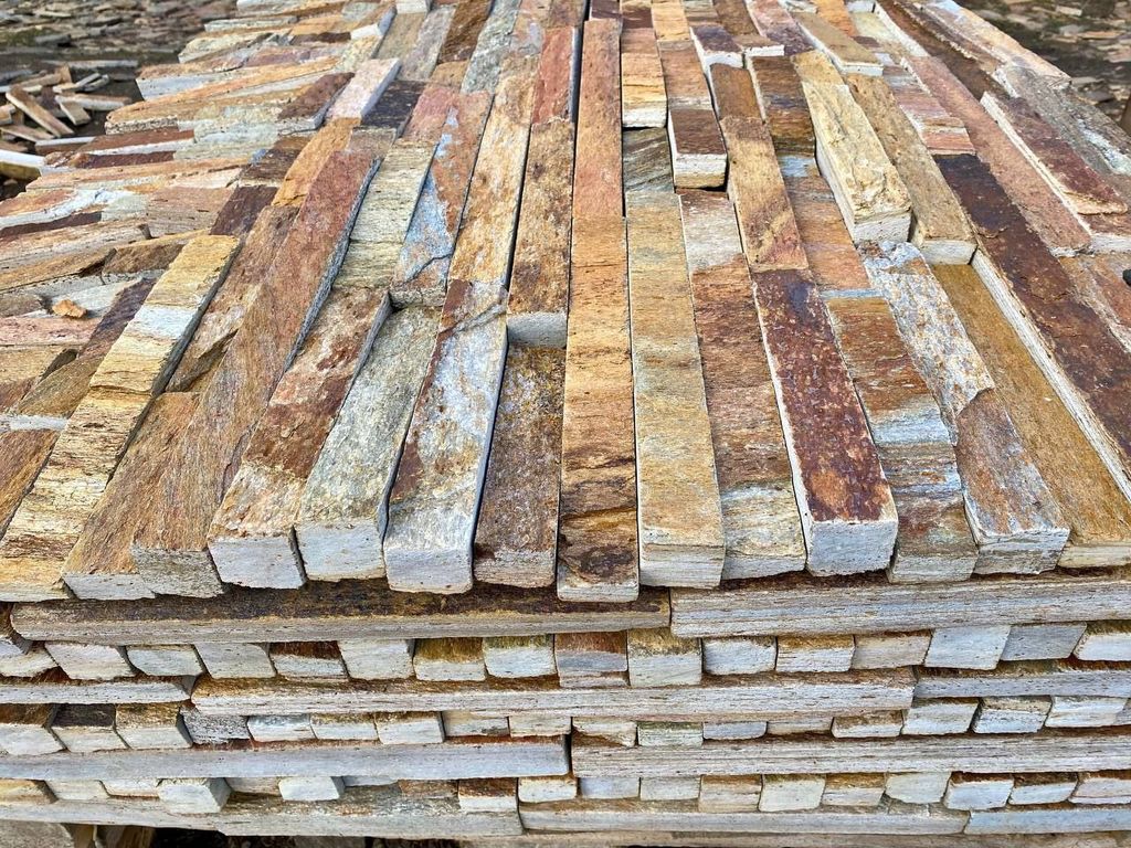 Сланец «Кора дерева» пиленая плитка, 20–25 мм — натуральный декоративный камень с выразительной фактурой, имитирующей кору дерева, и ровной пиленой поверхностью. Такая обработка обеспечивает точную геометрию, удобство укладки и аккуратный внешний вид готового покрытия.