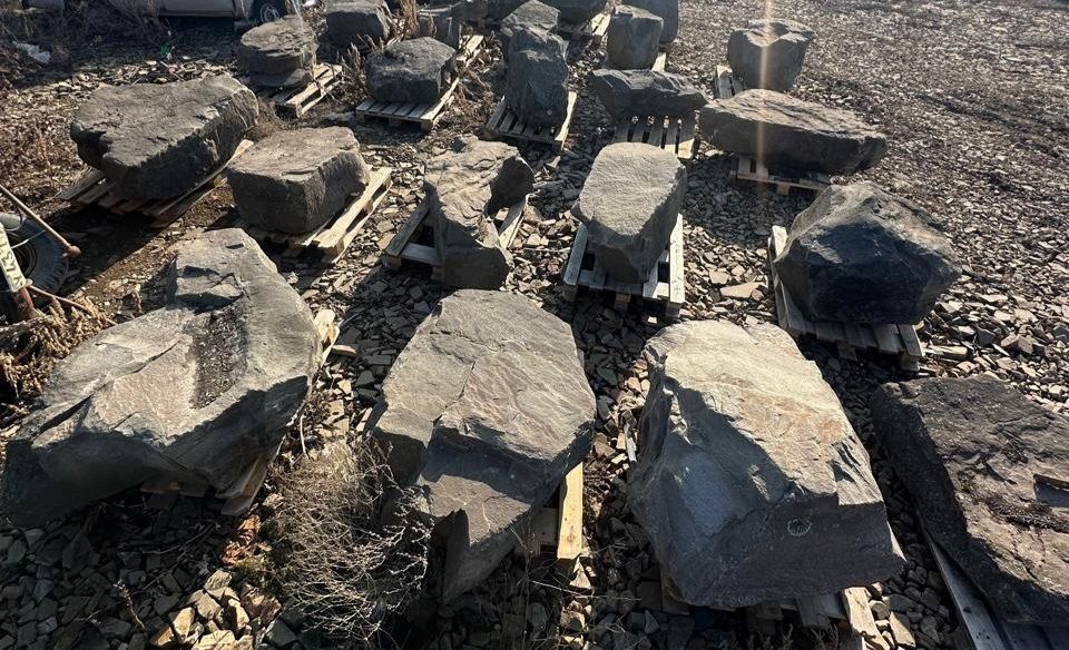 Валун серо-зелёный песчаник 500–5000 мм — надёжное и выразительное решение для создания масштабных и природных ландшафтных проектов.