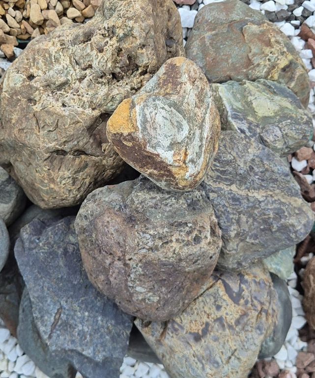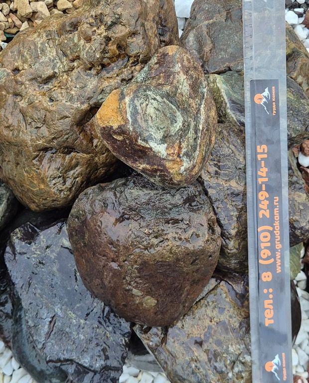 Фракция 200–500 мм указывает на крупные размеры отдельных камней, что делает данный материал особенно востребованным для ландшафтного дизайна, оформления подпорных стенок, альпийских горок, рокариев, водоёмов и декоративных композиций.