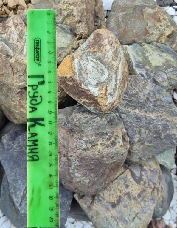 Фракция 200–500 мм указывает на крупные размеры отдельных камней, что делает данный материал особенно востребованным для ландшафтного дизайна, оформления подпорных стенок, альпийских горок, рокариев, водоёмов и декоративных композиций.